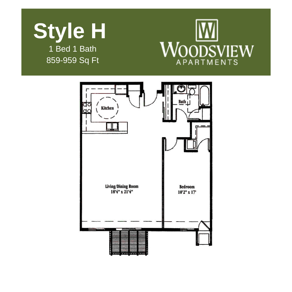 1 Bedroom 1 Bath 859-959 Sq Ft