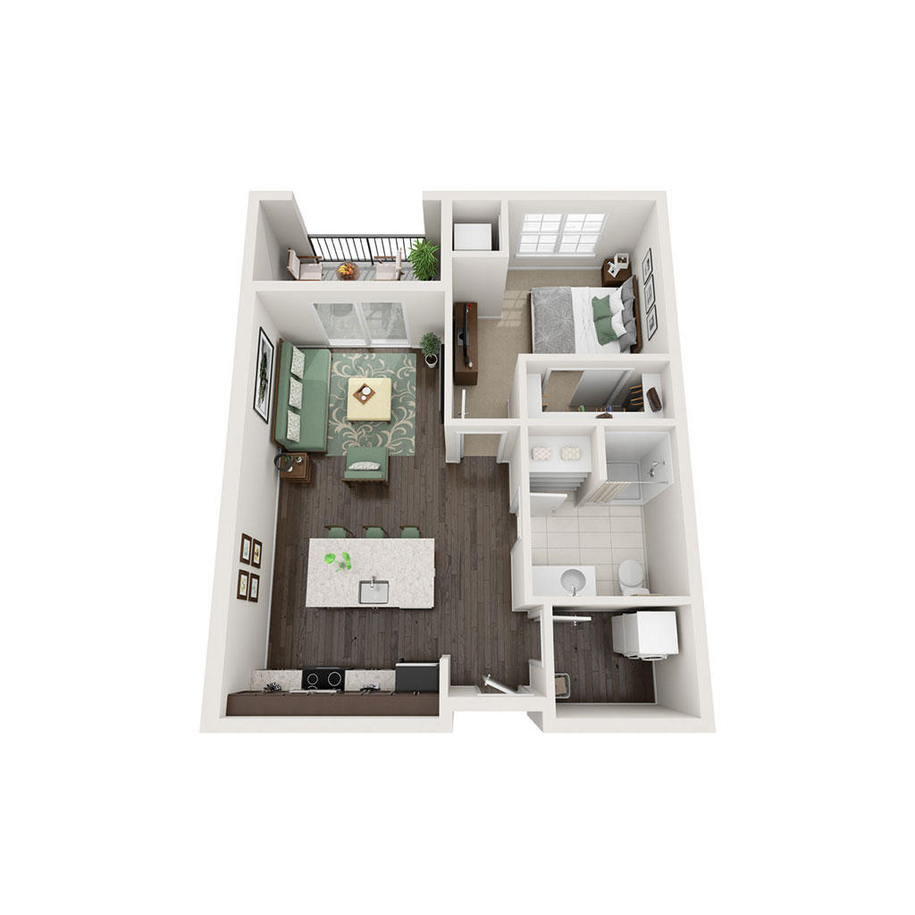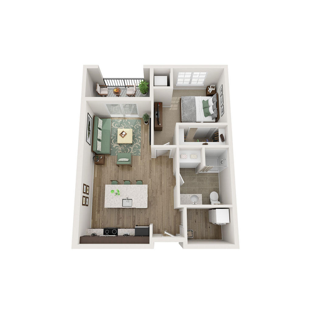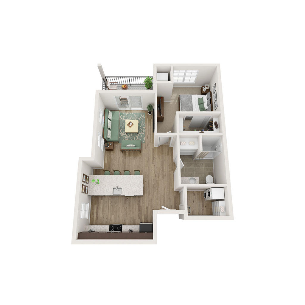 1 Bedroom 1 Bath 719 SF Sq Ft