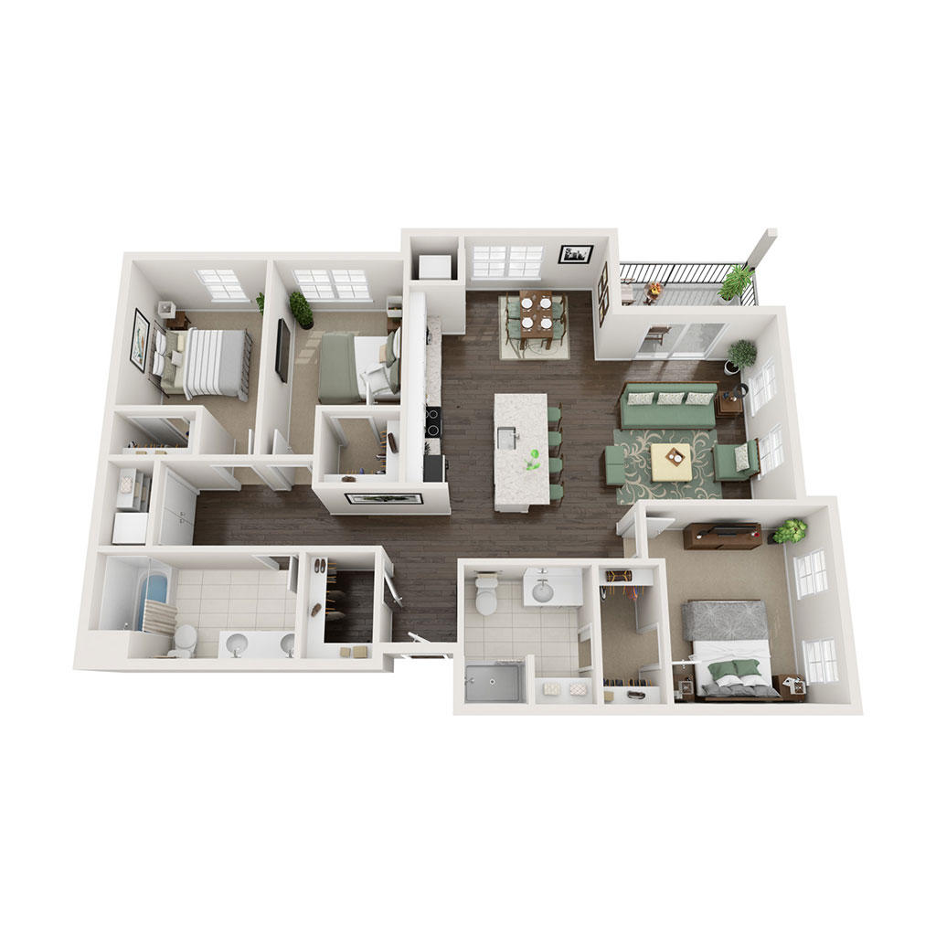 3 Bedroom 2 Bath 1341 SF Sq Ft