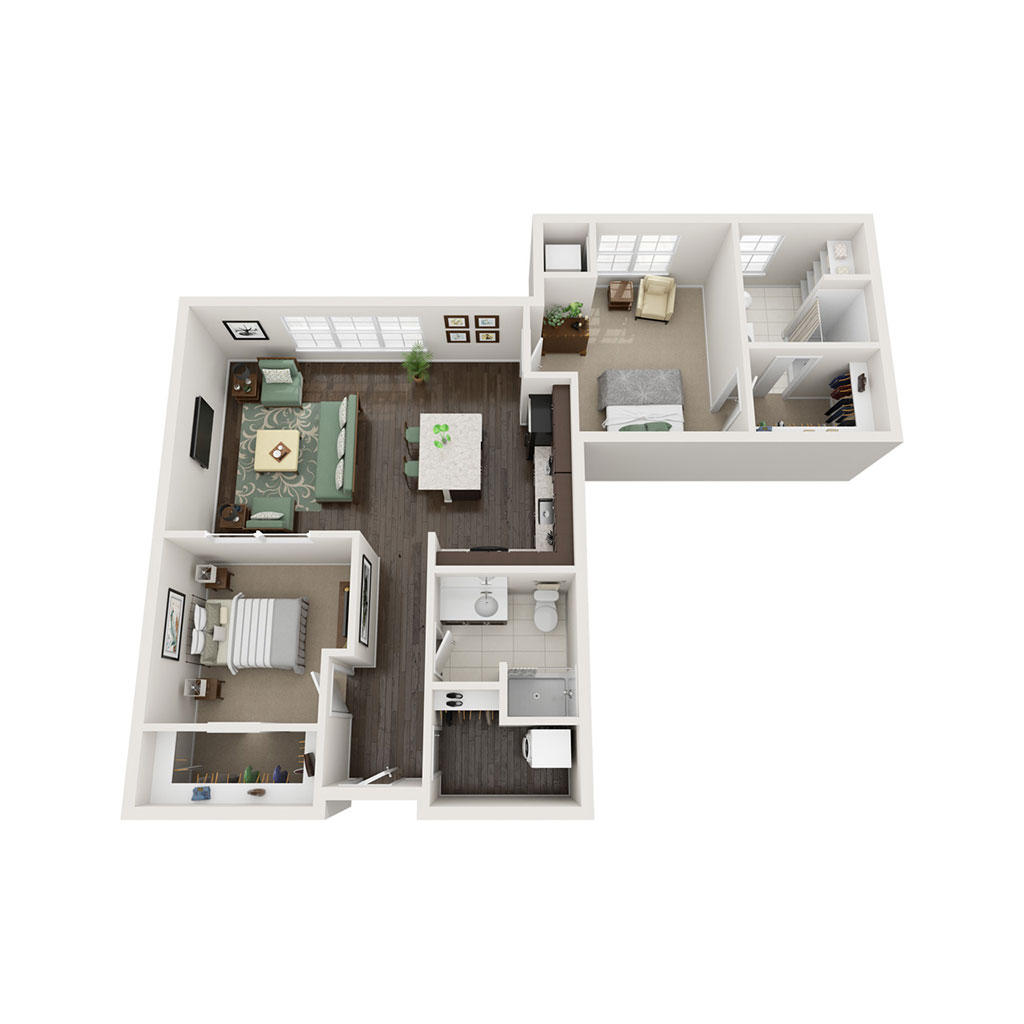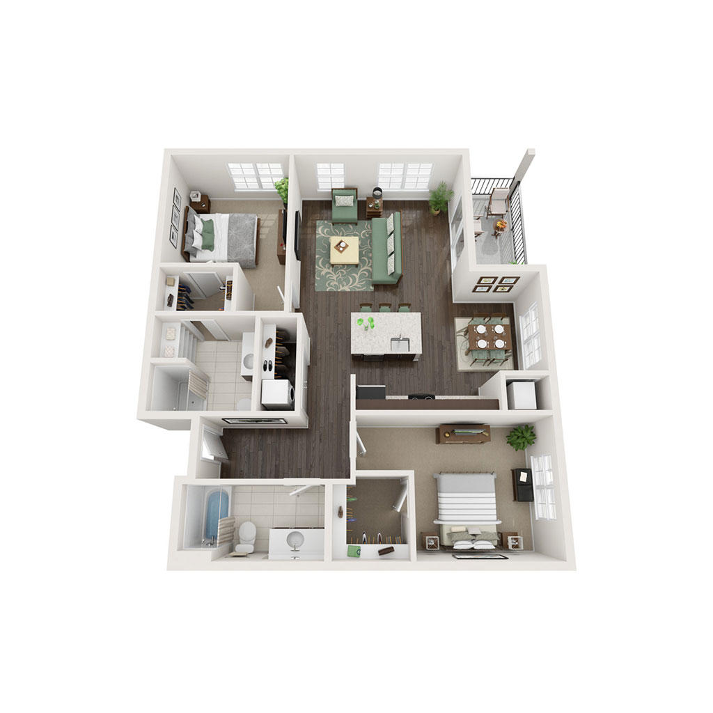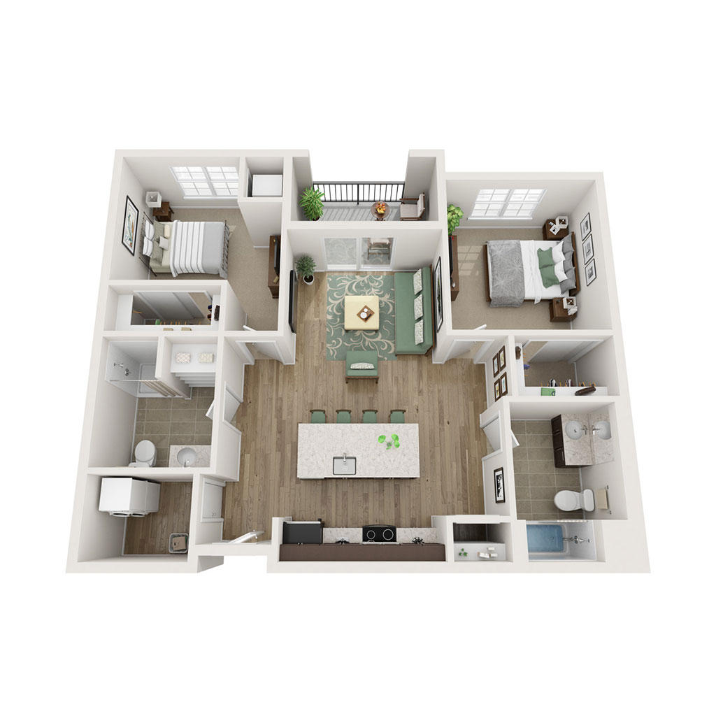 2 Bedroom 2 Bath 1069 SF Sq Ft