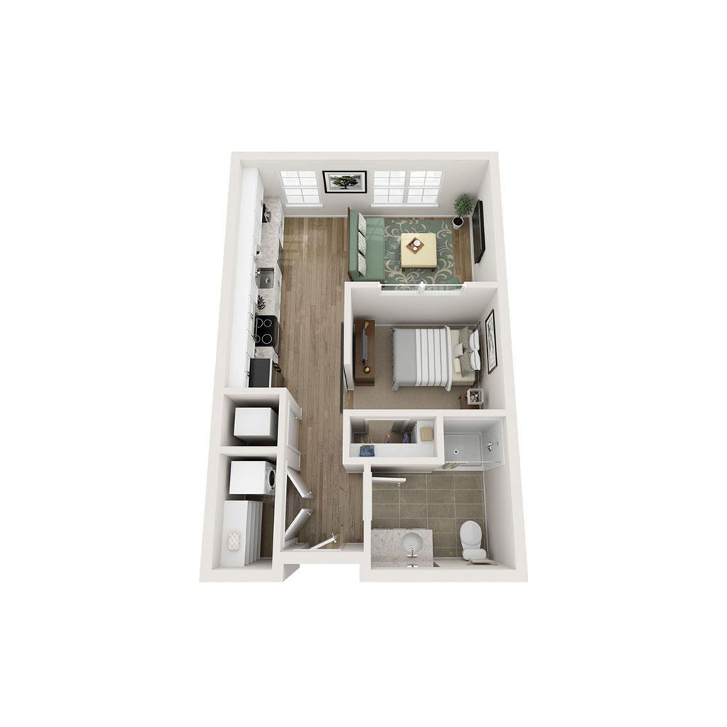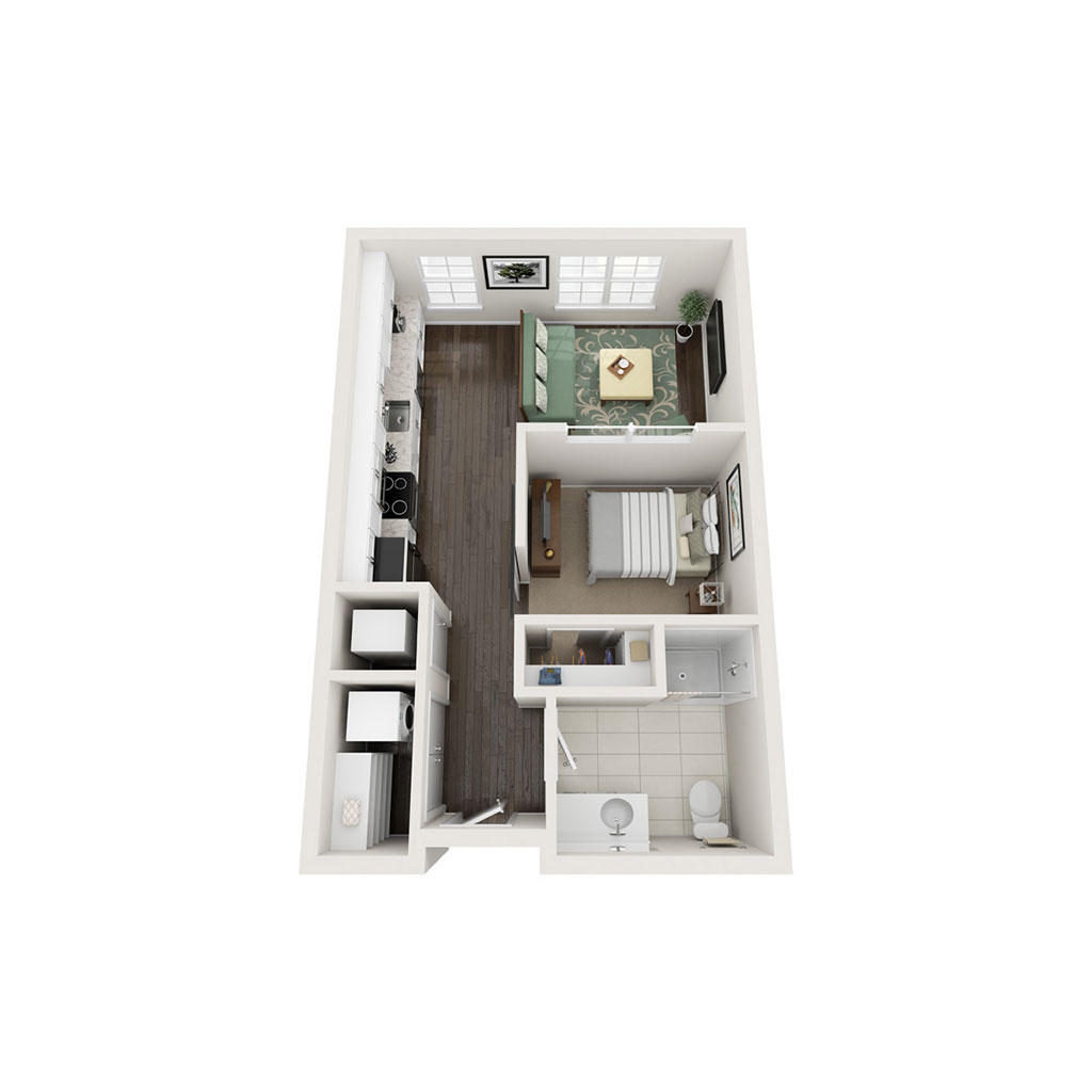 Studio 1 Bath 496 SF Sq Ft